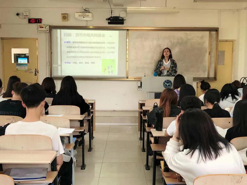 康洁助教,所授课程《金融市场实务》,回顾第二章货币市场共同基金的概念和特征,通过短暂过渡,让学生快速进入学习状态;结合回顾内容,进行本堂投资基金的启发式教学。