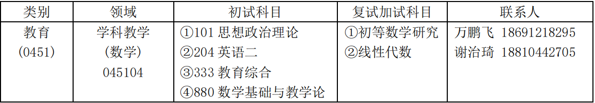 学科教学(数学)招生专业目录