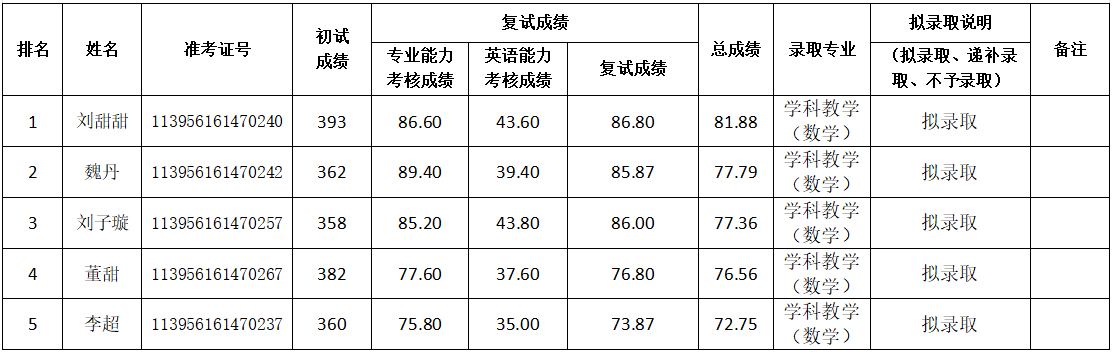 伟德国际1946bv2026年硕士研究生招生复试结果及拟录取建议名单