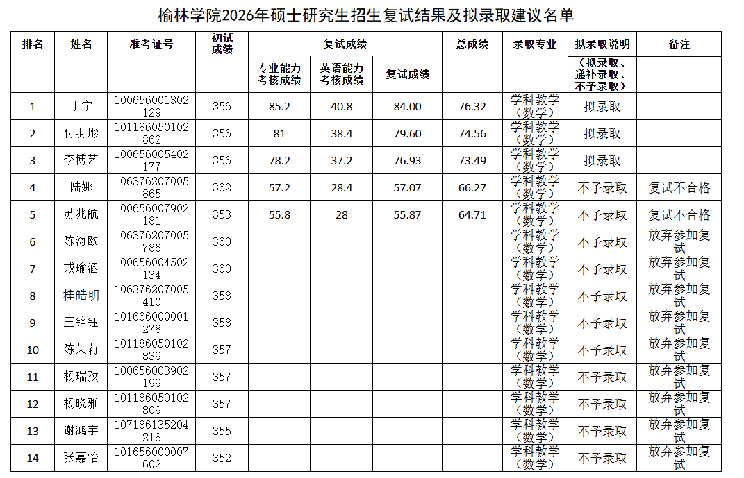 根据《1946伟德国际源自英国2026年硕士研究生招生复试录取工作实施细则》,我院对第一批调剂考生进行了复试。现将参加复试考生结果予以公示: