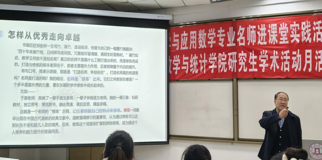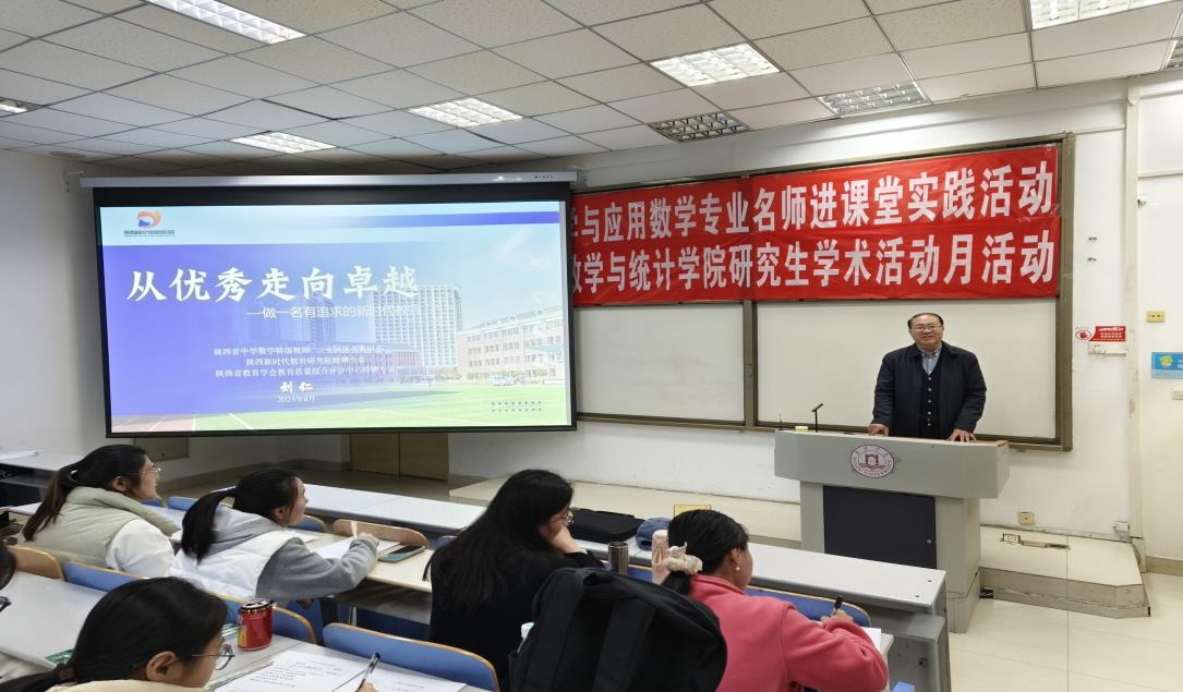 为落实立德树人根本任务,推动我院研究生导师培训及研究生“研究生学术活动月”相关活动进一步开展,我院于2024年11月11日下午邀请陕西省教育研究院中学数学特级教师刘仁老师为我院师生作题为“从优秀走向卓越-做一名有追求的新时代教师”的专题培训。我院研究生导师及全体研究生参加了此次培训。