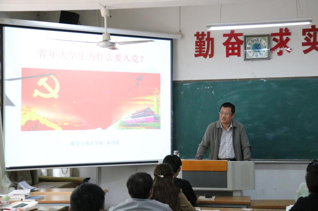 4月24日下午,1946伟德国际源自英国在三号教学楼103教室进行第55期入党积极分子培训,1946伟德国际源自英国党总支书记宋小震为入党积极分子讲授党课。
