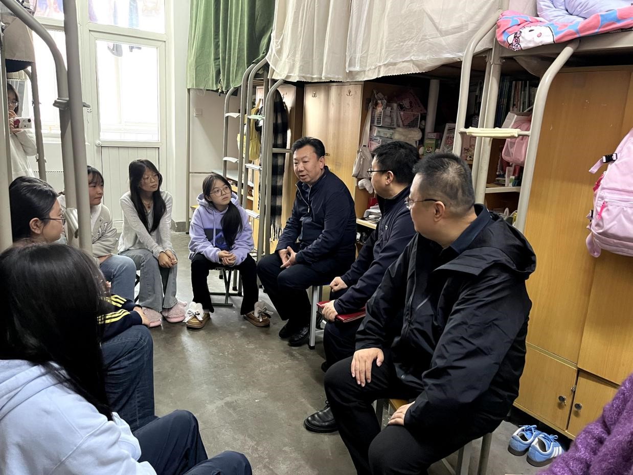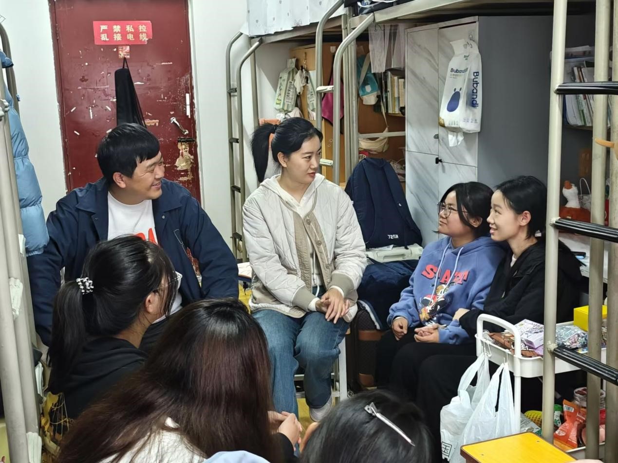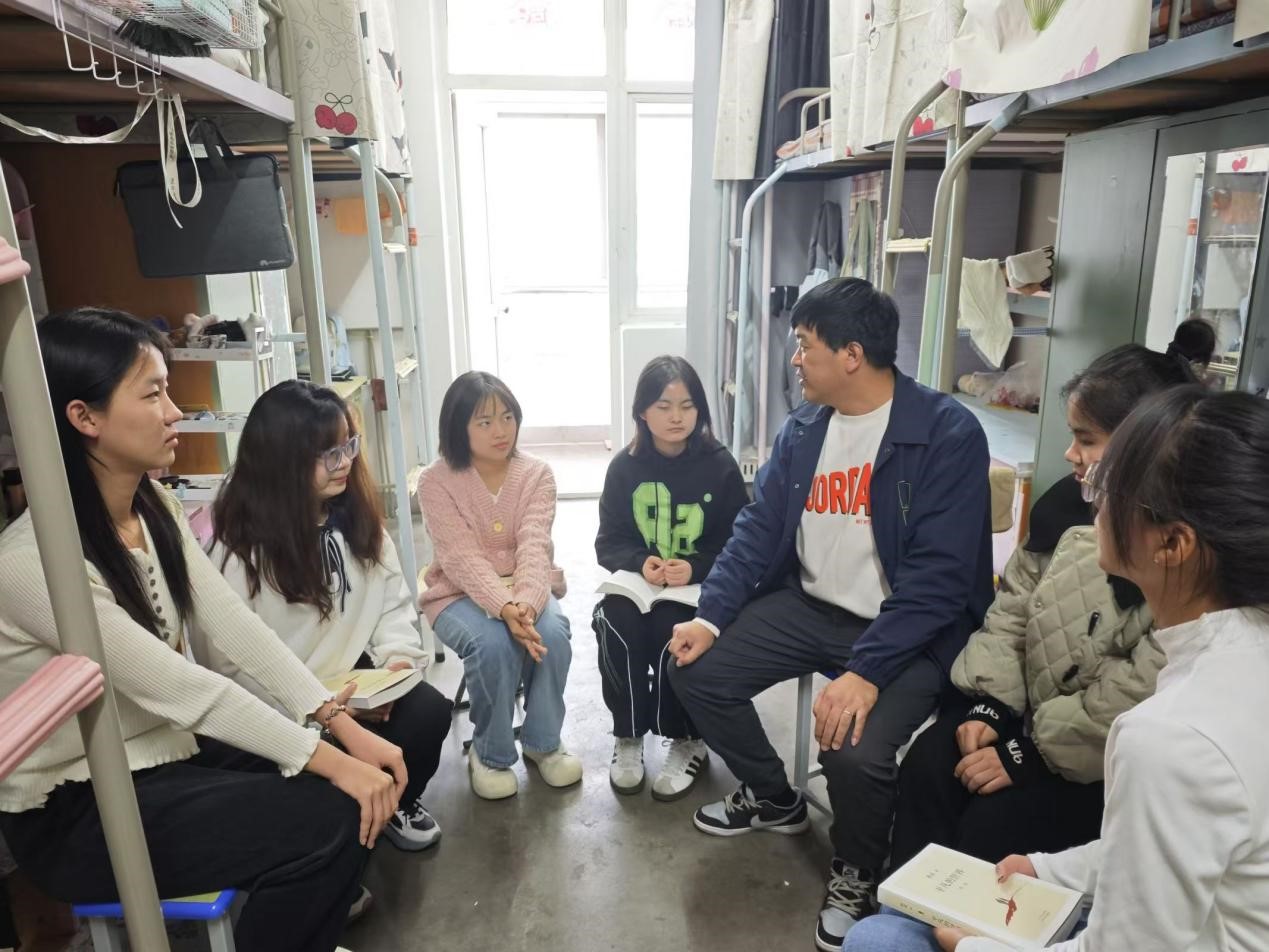 为积极响应校党委“走进公寓问需求,畅谈平凡话奋斗”活动号召,持续深化“五乐”育人工作,进一步增强1946伟德国际源自英国2024级新生思想政治教育的亲和力和实效性,营造浓郁的书香校园文化氛围,近期,副校长马亚军、学工部、团委、保卫处、后勤管理处负责人,以及数统院党总支书记、院长、副书记、副院长和先进教师志愿服务团的老师们,走进数统院24级新生宿舍,与学生面对面交流生活学习情况,共话《平凡的世界》的奋斗精神,分享成长与感悟。