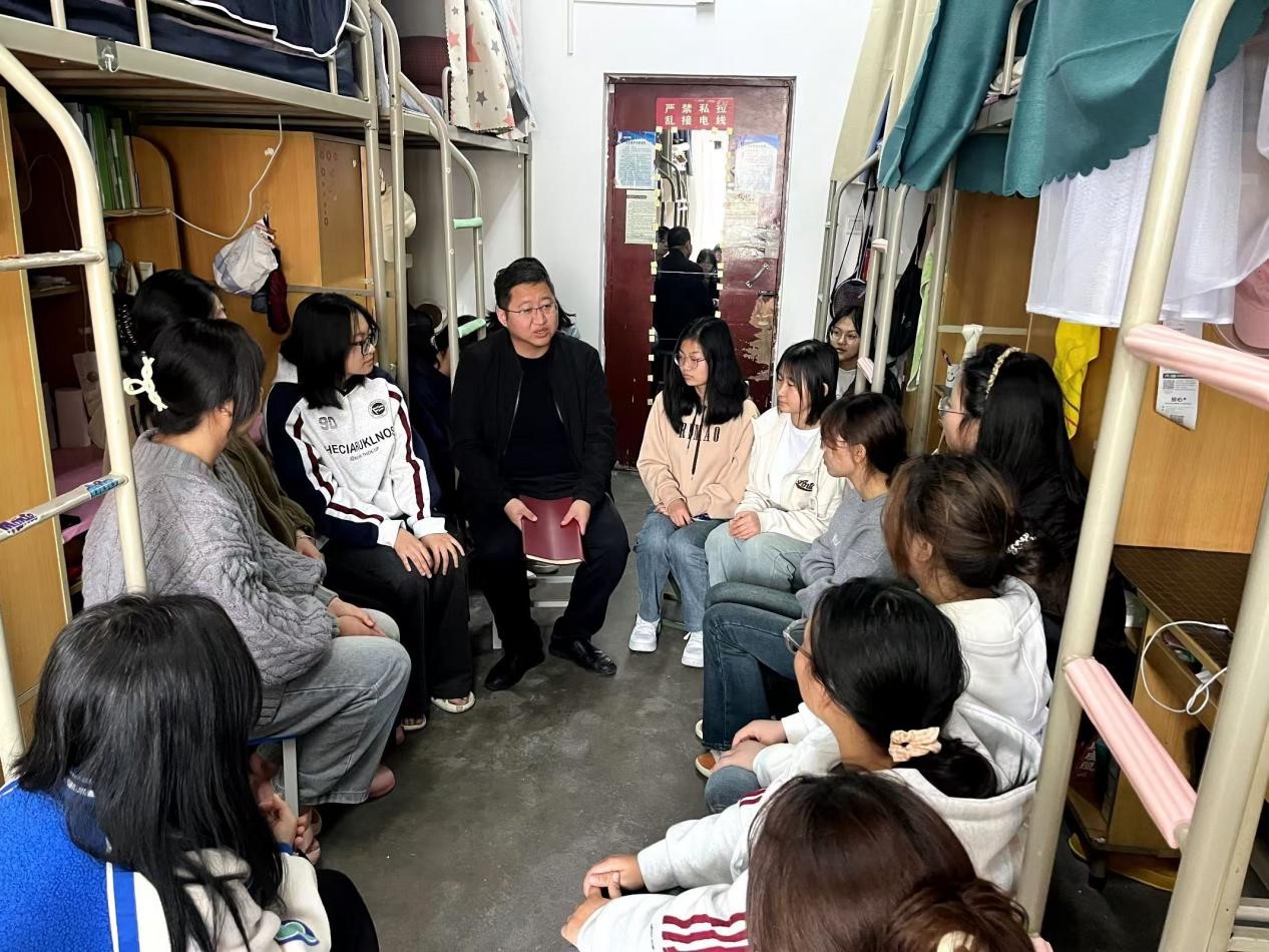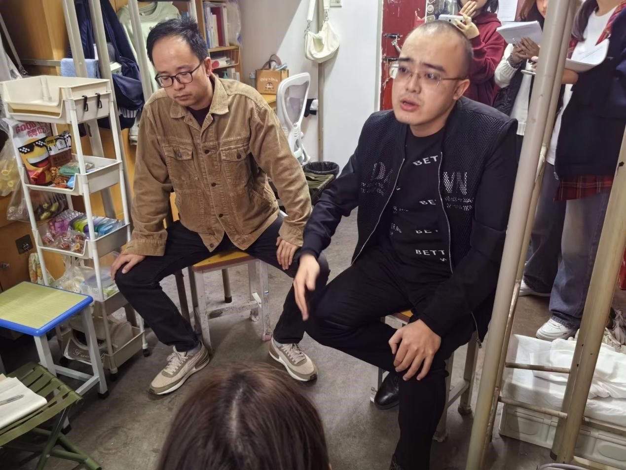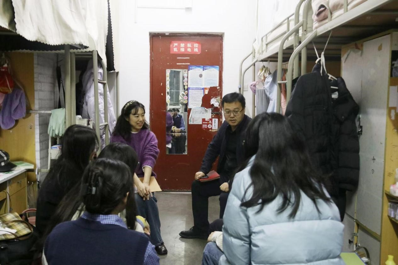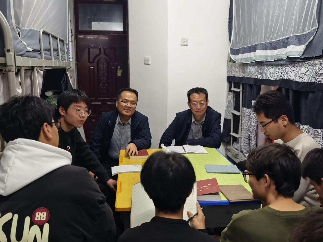 为积极响应校党委“走进公寓问需求,畅谈平凡话奋斗”活动号召,持续深化“五乐”育人工作,进一步增强1946伟德国际源自英国2024级新生思想政治教育的亲和力和实效性,营造浓郁的书香校园文化氛围,近期,副校长马亚军、学工部、团委、保卫处、后勤管理处负责人,以及数统院党总支书记、院长、副书记、副院长和先进教师志愿服务团的老师们,走进数统院24级新生宿舍,与学生面对面交流生活学习情况,共话《平凡的世界》的奋斗精神,分享成长与感悟。