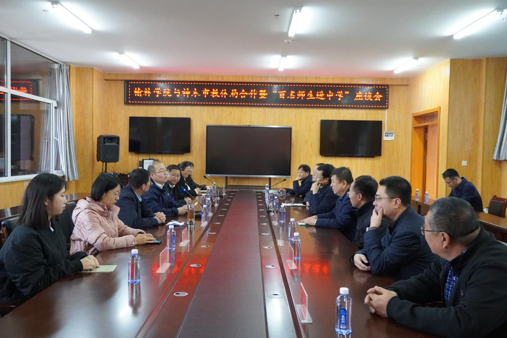 开幕式后,伟德国际1946bv与神木市教体局合作暨暨“百名师生进中学”座谈会在神木中学行政楼举行。