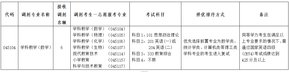 3.调剂考生第一志愿专业与调入专业相同相近,或初试科目与调入专业初试科目相同相近。其中一志愿报考专业的统考科目数量≥我校相关专业的统考科目数量。